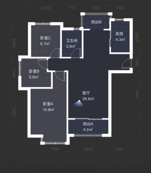 • 房屋户型 3室1厅 1厨 1卫 2阳台