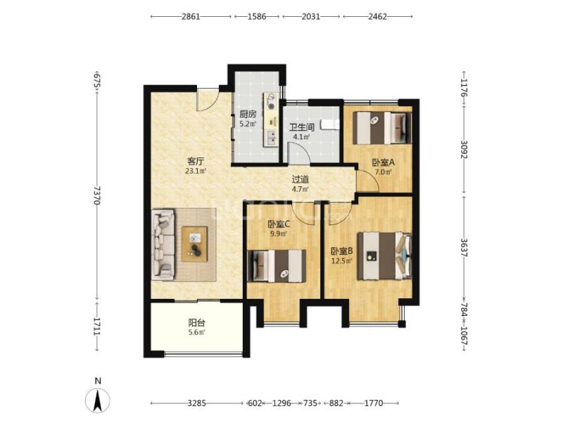 3室2厅 1厨 1卫 1阳台