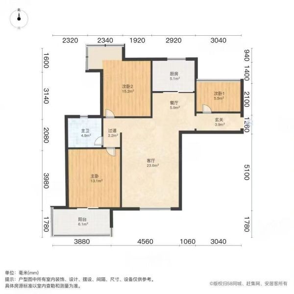 3室2厅 1厨 1卫 1阳台