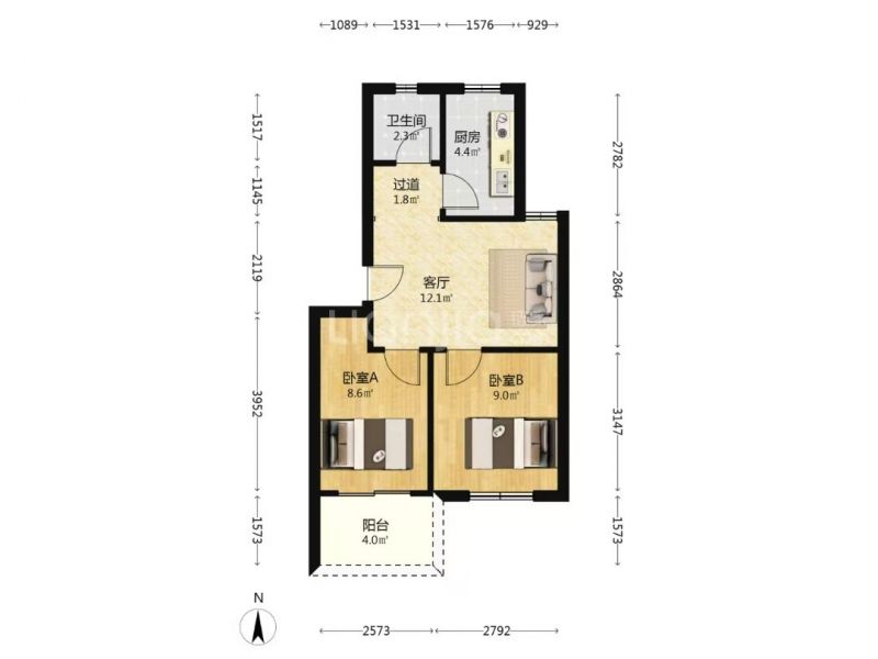 2室1厅 1厨 1卫 1阳台