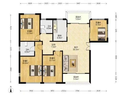 4室2厅 1厨 2卫 2阳台