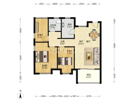 3室2厅 1厨 1卫 1阳台
