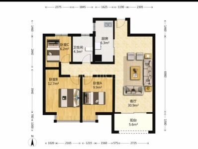 北城世纪城二期吉徽苑 3室1厅